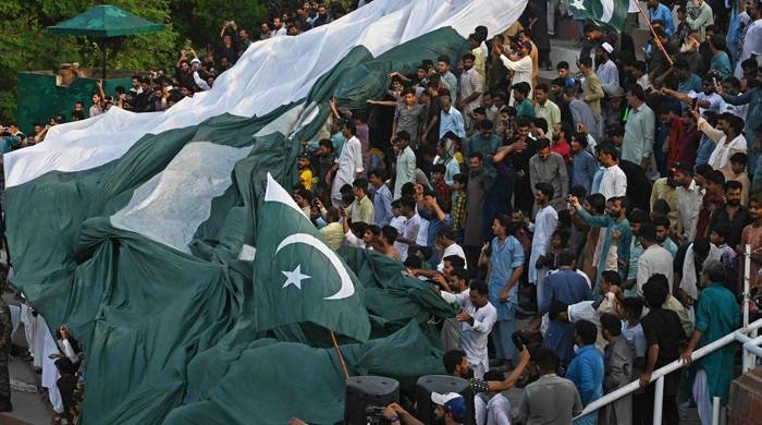 People carry a giant Pakistan flag Pakistan-India Wagah border post on August 13, 2023. — AFPA panel of experts at Karachi University on Tuesday discussed the challenges that Pakistan’s fragile democracy faces as the general elections are all set to take place on February 8 The…