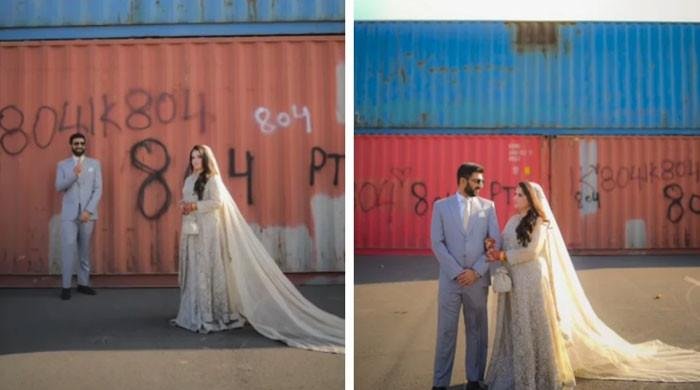 Islamabad couple poses in front of the containers amid the ongoing PTI protest in Islamabad. — Screengrab/Intagram/@thetalentstudiosAmid the ongoing Pakistan Tehreek-e-Insaf protest, a bizarre wedding couple photoshoot took place in the capital of Islamabad with the bride and the groom…